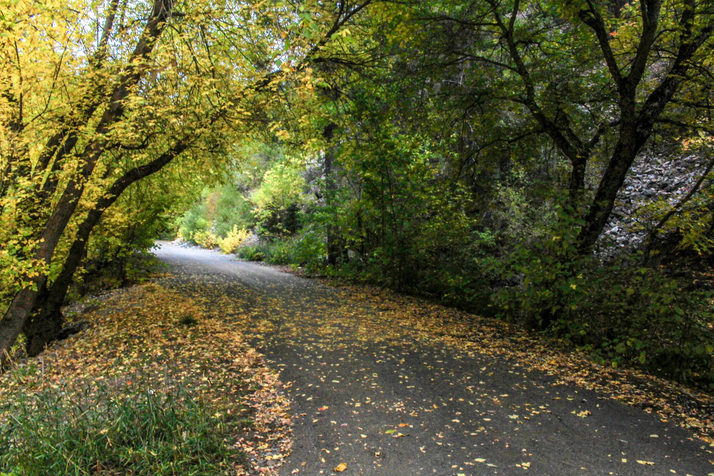 Find a trail, whether it is a hiking trail or a road. Look to see if there are colorful trees around it. Using the rule of thirds, put the trail on one side of your photo and make sure you have trees included in your photo. You don't need the full length of the trees.