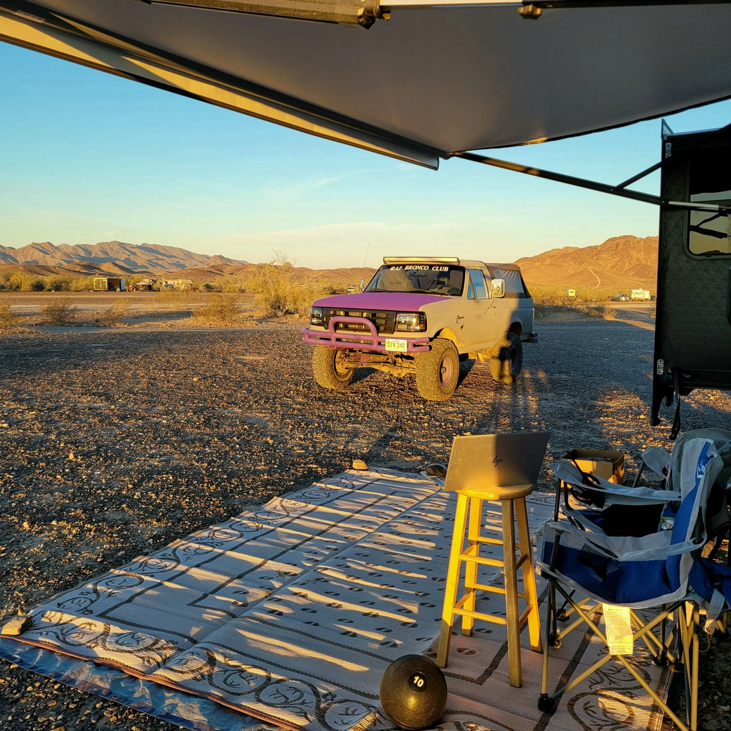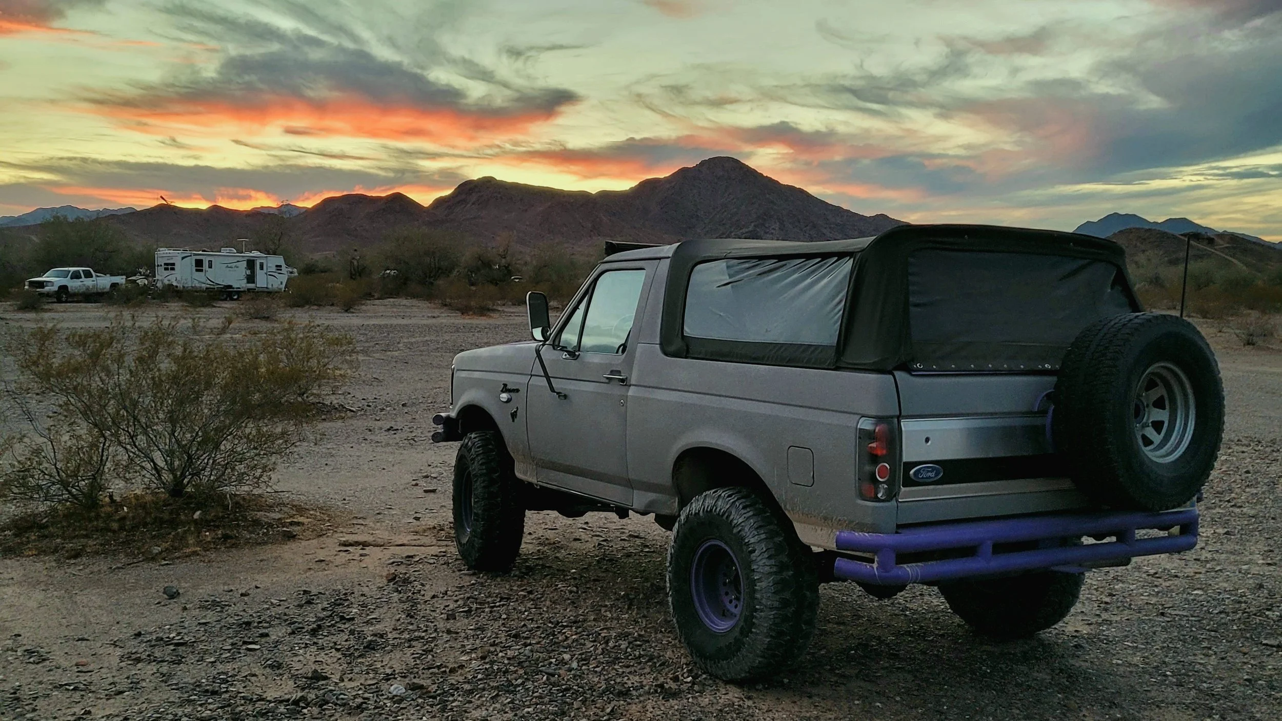 The awesome Bronco looking west at an amazing sunset in Quartzsite, Arizona!