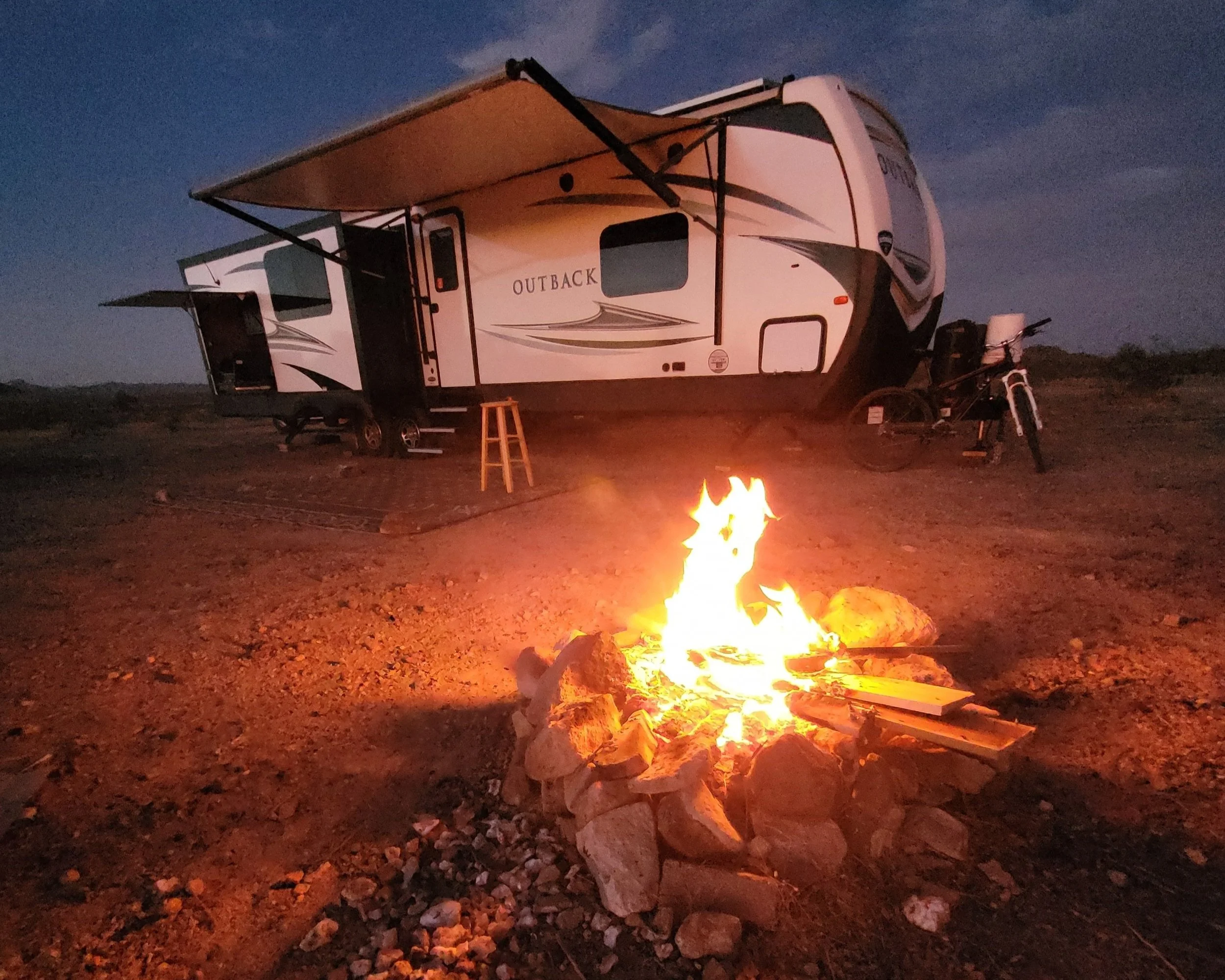 My husband built a nice size fire as it was the end of January and quite cool outside, even for a desert. I will say I did enjoy the quiet, the solitude of no loud neighbors, cars screeching or speeding down the street and most importantly, the stars were ablaze that night. Such a sight! Yet, here we were, all alone, with some campers not too close, which is the way I like it, our first night away from the big city, away from our precious kids that are now young adults, away from life as we knew it, ready for a new adventure in travel and discovering what we liked and not liked as we started a new life as fulltime rvers.